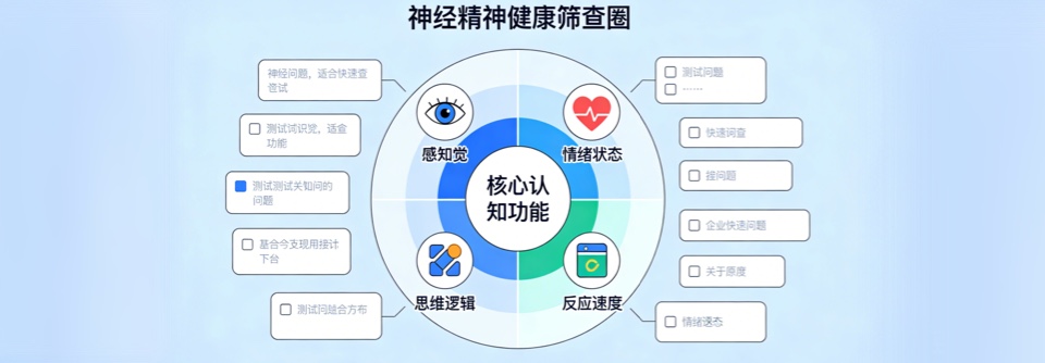 基于临床验证的神经精神量表核心框架,本测评可系统评估常见行为与情绪症状,为早期识别与健康管理提供专业参考。通过结构化分析,助您科学理解神经精神健康状态。